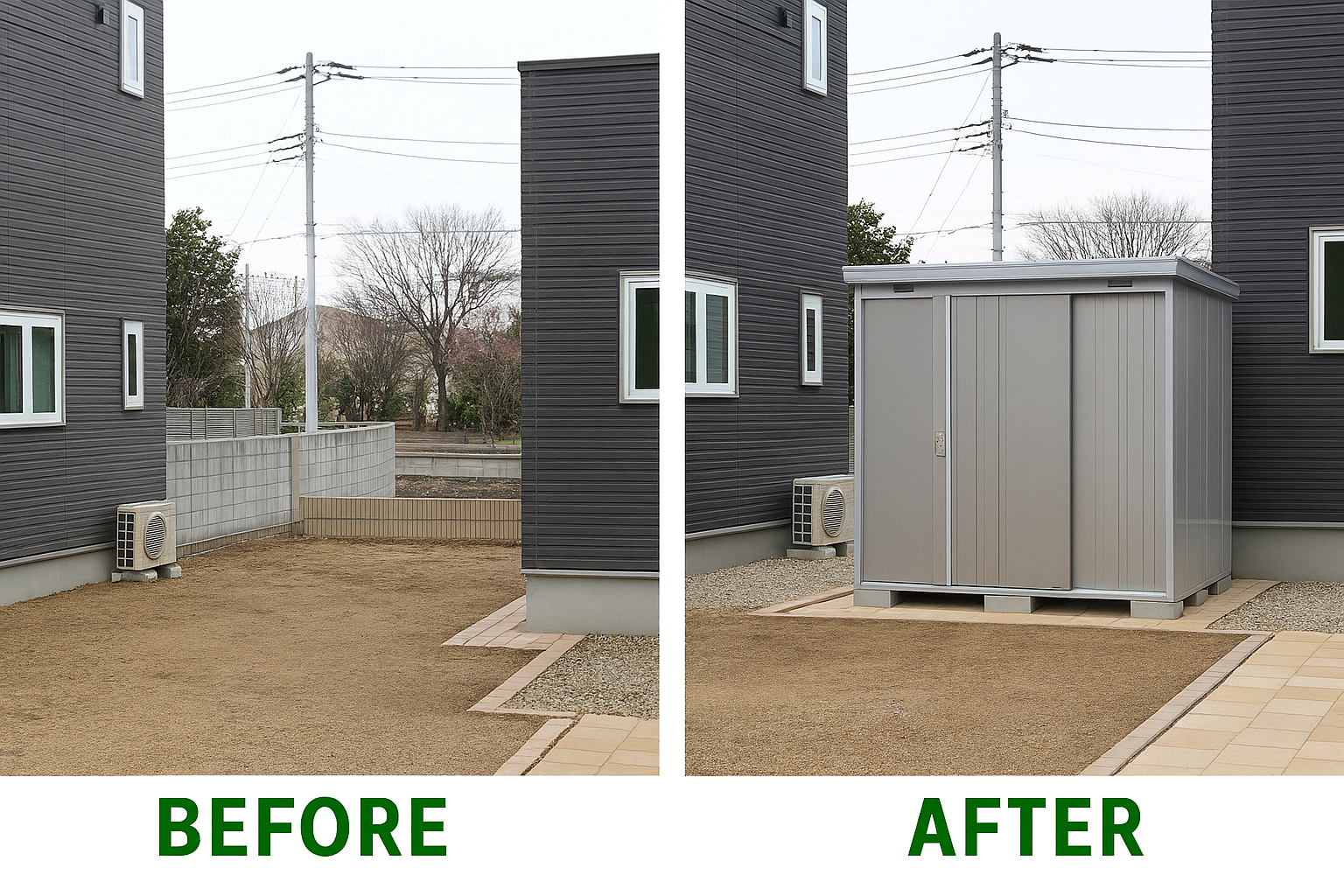 お庭の空きスペースを有効活用し、使い勝手の良い物置を設置しました。「ちょっとした収納が欲しい」「庭をすっきりさせたい」そんなお悩みも、私たちにお任せください。地域密着の丁寧な施工で、暮らしに寄り添う空間づくりをお手伝いします。